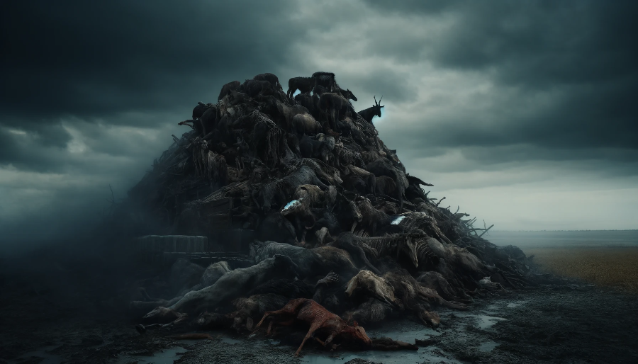 눈 덮인 땅에 동물 사체가 쌓여있는 꿈
