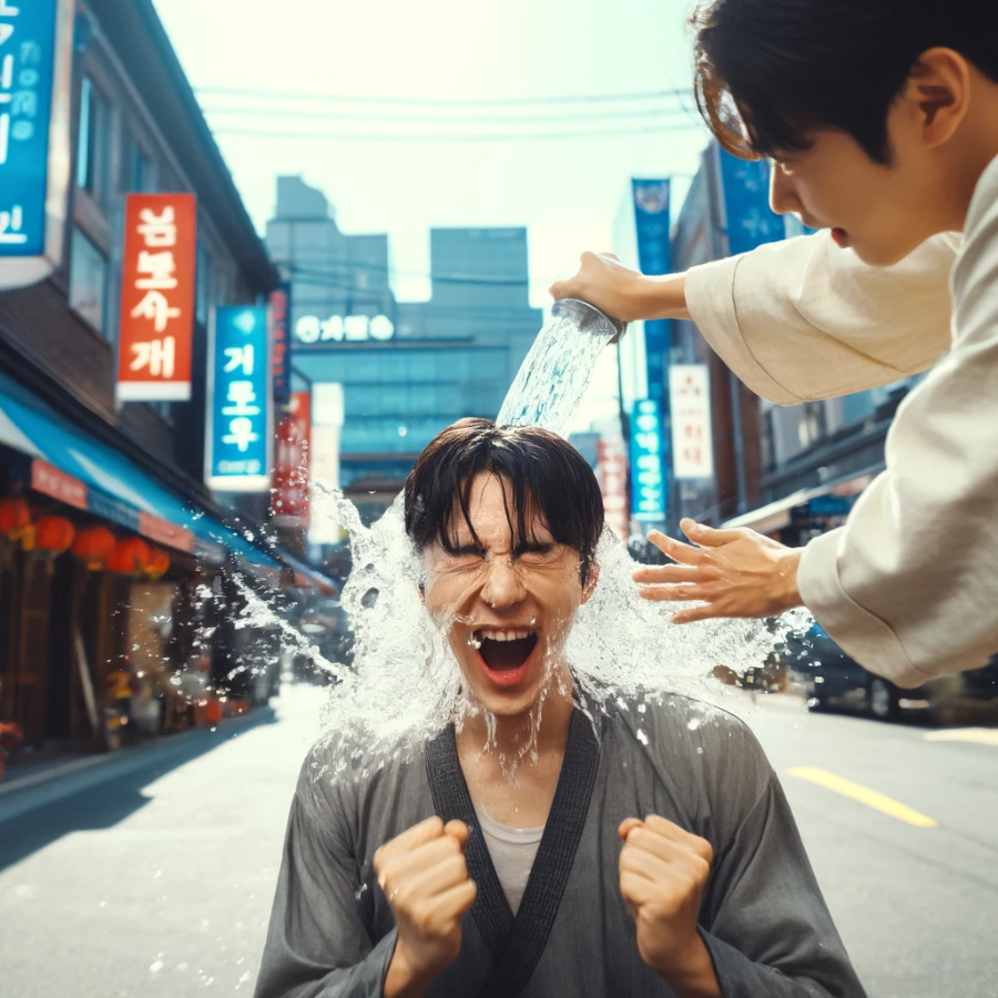 한국에서 상대의 얼굴에 물을 뿌리는 꿈은 두 사람 사이에 어떤 오해나 갈등이 존재함을 의미합니다.