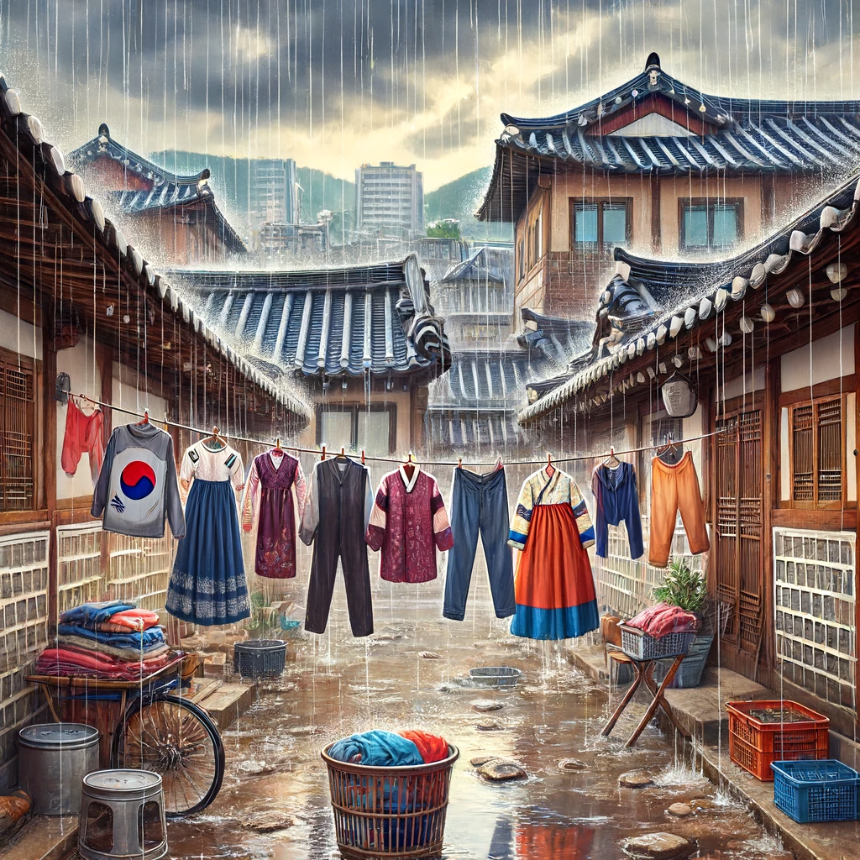 한국에서 비는 보통 정화와 새로운 시작을 의미하지만, 빨래가 젖는 꿈에서는 부정적인 요소가 더 많이 반영됩니다. 비로 인해 빨래가 젖는 상황은 계획했던 일이 예상치 못한 방해로 인해 제대로 이루어지지 않을 수 있다는 경고로 해석됩니다. 이는 일이나 개인적인 일에서 갑작스러운 변화를 의미할 수 있습니다.