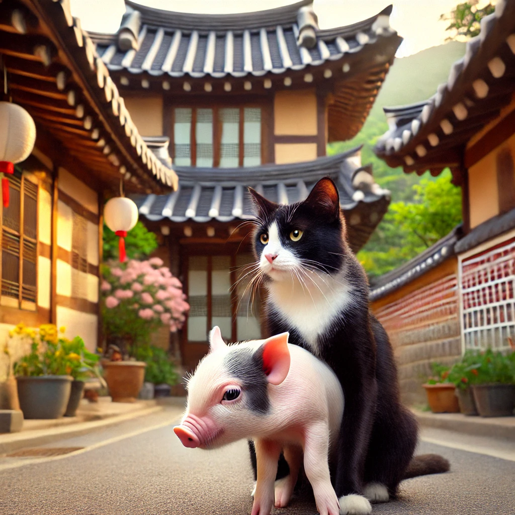 새로운 시작이나 기회를 맞이할 준비가 되어 있음을 나타냅니다. 고양이의 영리함은 꿈꾸는 사람이 문제를 해결하는 데 있어서 뛰어난 능력을 가지고 있음을 의미하며, 새끼돼지는 순수하고 새로운 가능성을 나타냅니다. 이는 꿈꾸는 사람이 자신의 재능과 능력을 최대한 발휘하여 새로운 기회를 창출할 수 있음을 시사합니다.