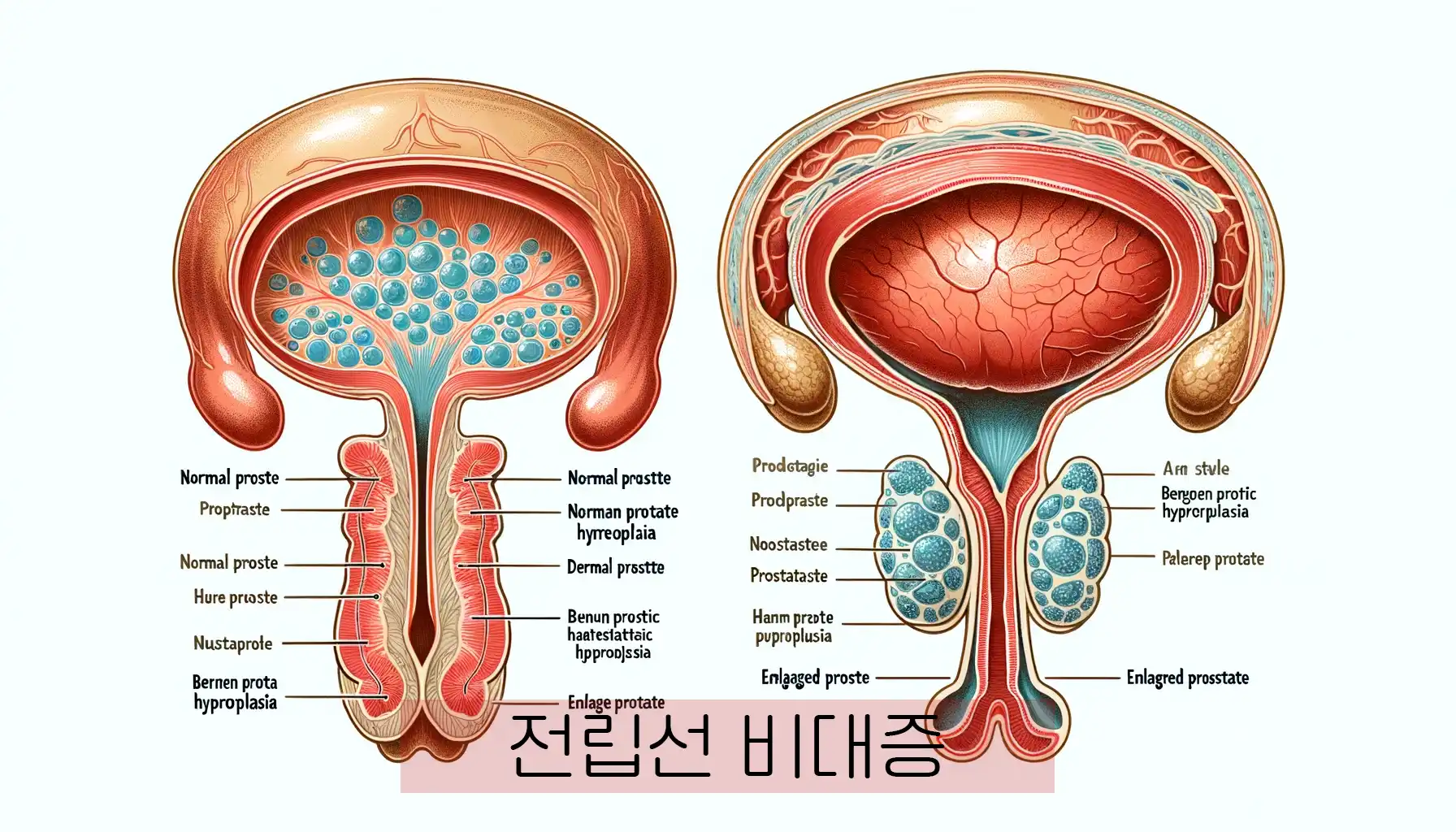 • 지연뇨: 소변을 보기 시작하는 데 시간이 걸리는 증상입니다. 이는 전립선이 요도를 압박하여 발생합니다.