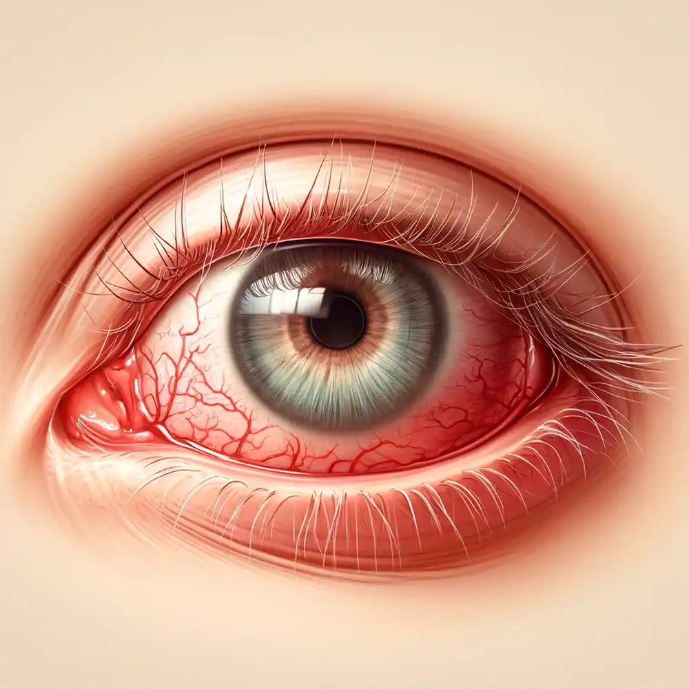 - 충혈: 결막 혈관의 확장으로 인한 눈의 붉어짐