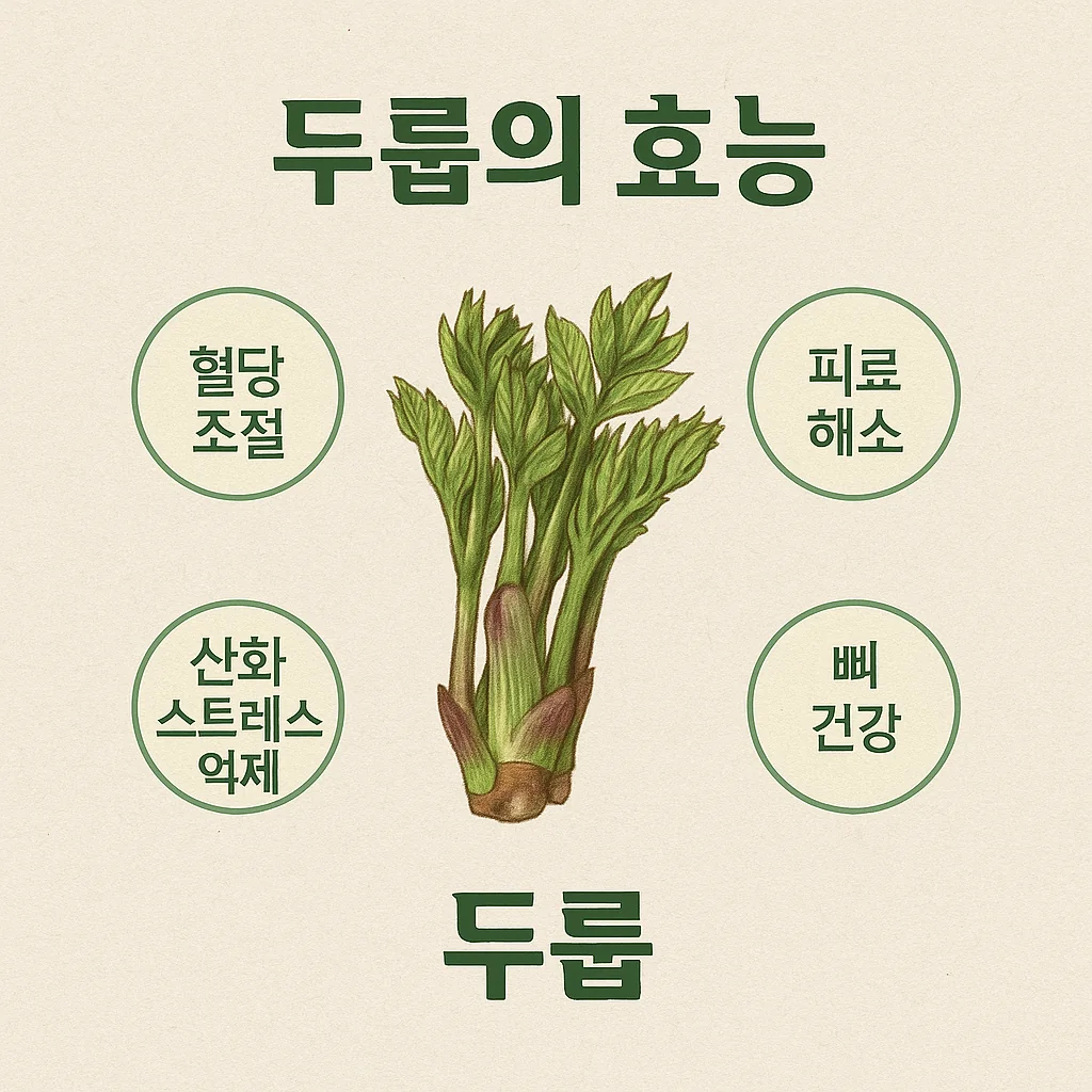 두룹은 간 기능을 개선하는 데 도움을 주는 성분이 포함되어 있어요. 특히 간의 해독 작용을 도와 피로 회복과 숙취 해소에도 좋다고 해요. 회식 다음날 아침에 두룹나물 먹으면 확실히 속이 편안한 느낌이 들더라구요!