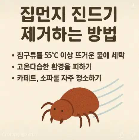 또한, 물걸레질을 할 때는 미세먼지 캡처 기능이 있는 물티슈나 정전기 포집용 걸레를 사용하면 좋아요. 일반 걸레는 먼지를 완전히 제거하지 못하고 퍼트리기만 할 수 있거든요. 진드기는 물에 약하기 때문에 물걸레질만 해도 효과적인 제거가 가능해요.
