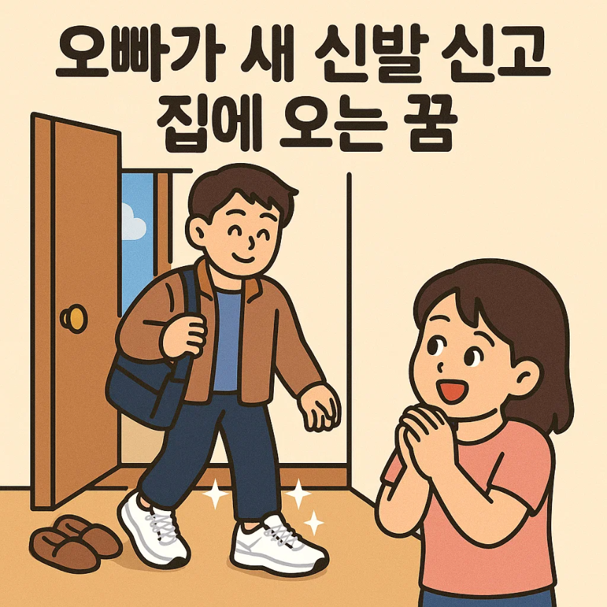 이는 오빠를 통해 가정에 행복과 번영이 찾아올 수 있음을 시사합니다. 새 신발은 깨끗하고 새로운 에너지를 상징하므로, 오빠가 이러한 신발을 신고 집에 들어오는 모습은 긍정적인 변화와 기회가 가까이 있음을 알려줍니다.